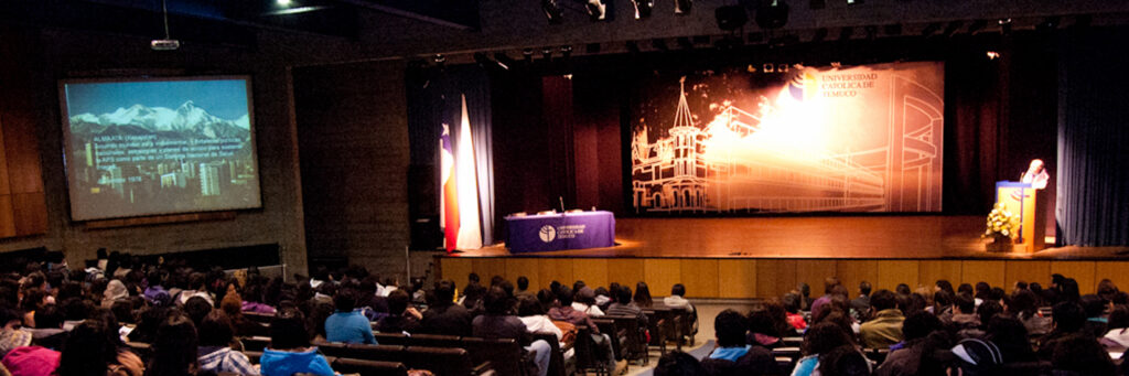 El Aula Magna de la UC Temuco se consolida como el principal escenario universitario de la ciudad de Temuco. Cuenta con 645 metros cuadrados construidos y tiene una capacidad para recibir a 600 personas cómodamente sentadas. El escenar- io del Aula Magna en sus años de existencia ha recibido a connotados artista de relevancia nacional e internacional. Dela misma manera ha sido el escenario que ha visto nacer a jóvenes talentos de nuestra región y ciudad. Dispone todos los años de un programa artístico cultural para La Araucanía totalmente gratis.